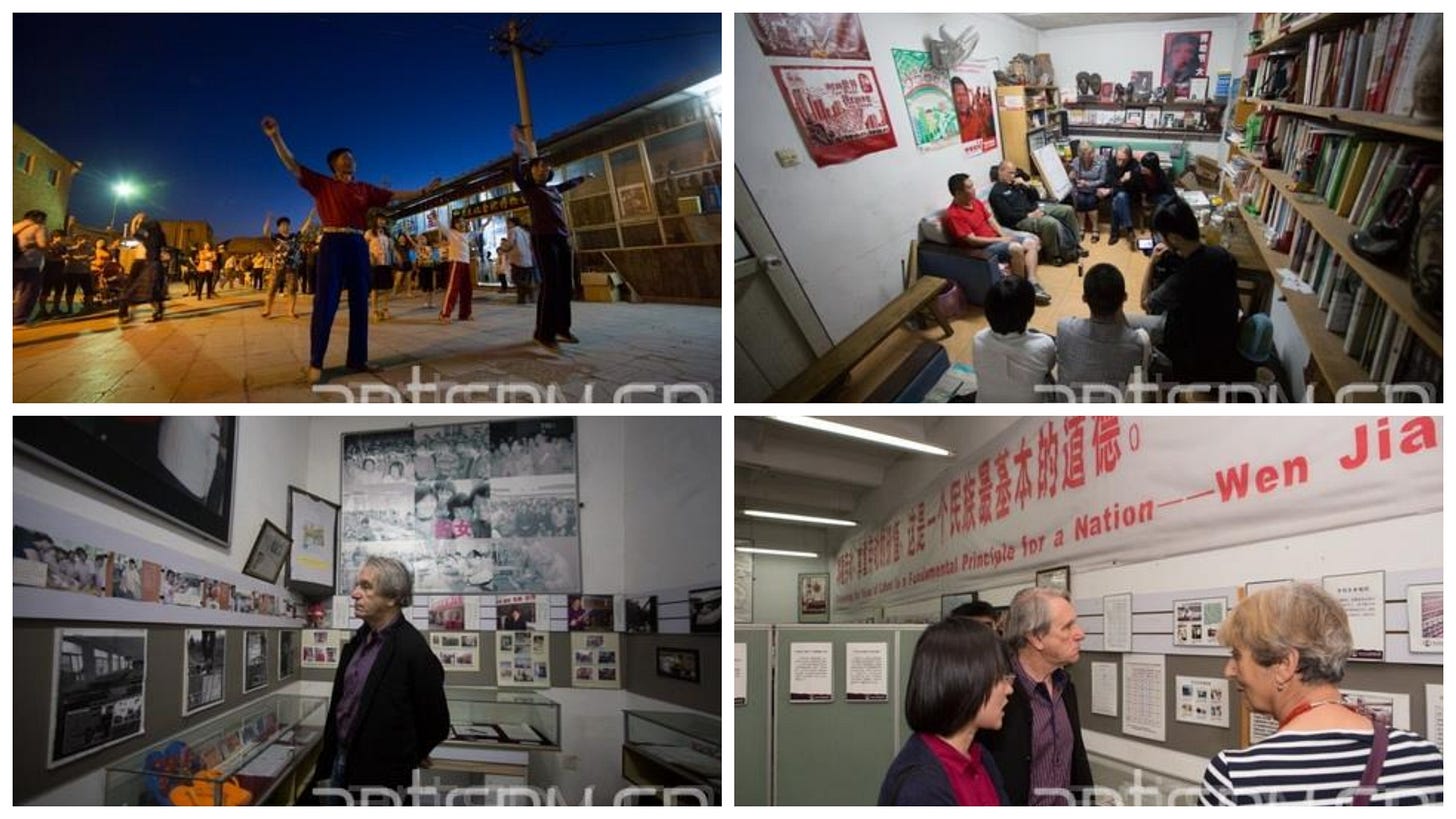 The visit to Picun this evening was a last-minute decision. The small village between the Fifth and Sixth Ring Roads is home to thousands of migrant workers, who are known for their unique forms of self-government. Projects over the past decade by several young artists and writers, themselves migrants to Beijing, have resulted in an independent economic system (the second-hand shops), educational system (a university for workers), exhibition system (a migrant labor museum and theater), and a culture brand (the yearly arts festivals for migrant workers). "I believe changing the world begins gradually, starting in small places like this," Sun Heng said, standing in his modest office and reception. On his bookshelves were biographies of revolutionary leaders and records of global socialist movements, but also documents related to labor rights and material on migrant workers. The goal of his group is use culture to raise the consciousness and strengthen the sense of identity of workers. In the courtyard, a crowd gathered around a screen showing a James Bond movie. People were reading in the library. Children played in the yard, alongside a group of women doing aerobics. On the wall of the museum was a quote from Wen Jiabao: "Respect for labor is a fundamental principle for a nation." It gave the impression of a well-functioning community.