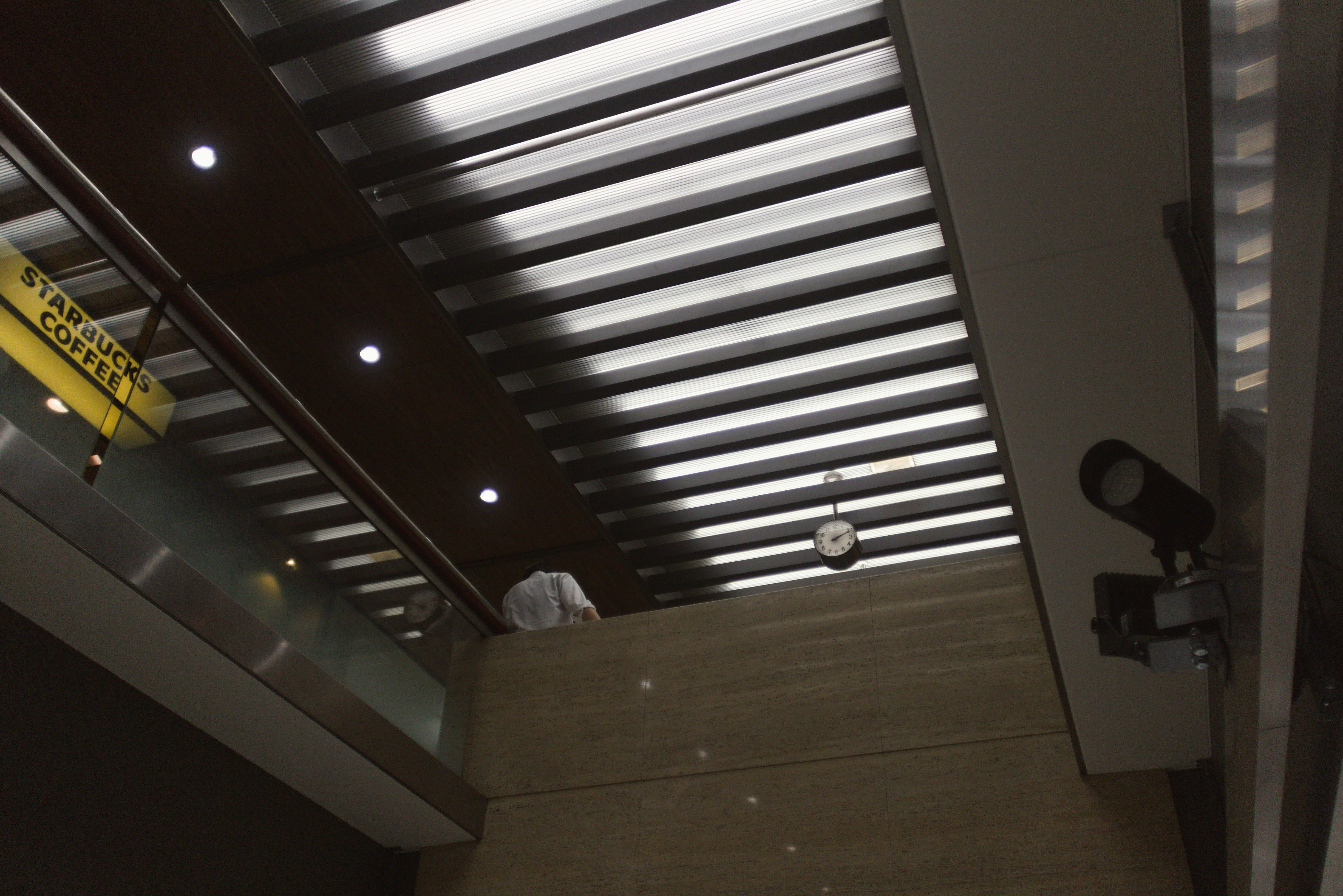 ice-cold noodles out of a golden bowl. The arcade and the basement halls are the only places bright enough to feel alive. That must be why he lingers there. Except for the restaurants after the lunch rush, taking too long to pay the bill, there’s nowhere else to sit idle. Upstairs, and in the stairwells, lit by mixture of power-saving LEDs and late winter sunshine through the slit windows, the very air seems gray. That was why the rooftop was left half-green, with long benches, the art salvaged from Raymond’s building. But if he went up there, I couldn’t find